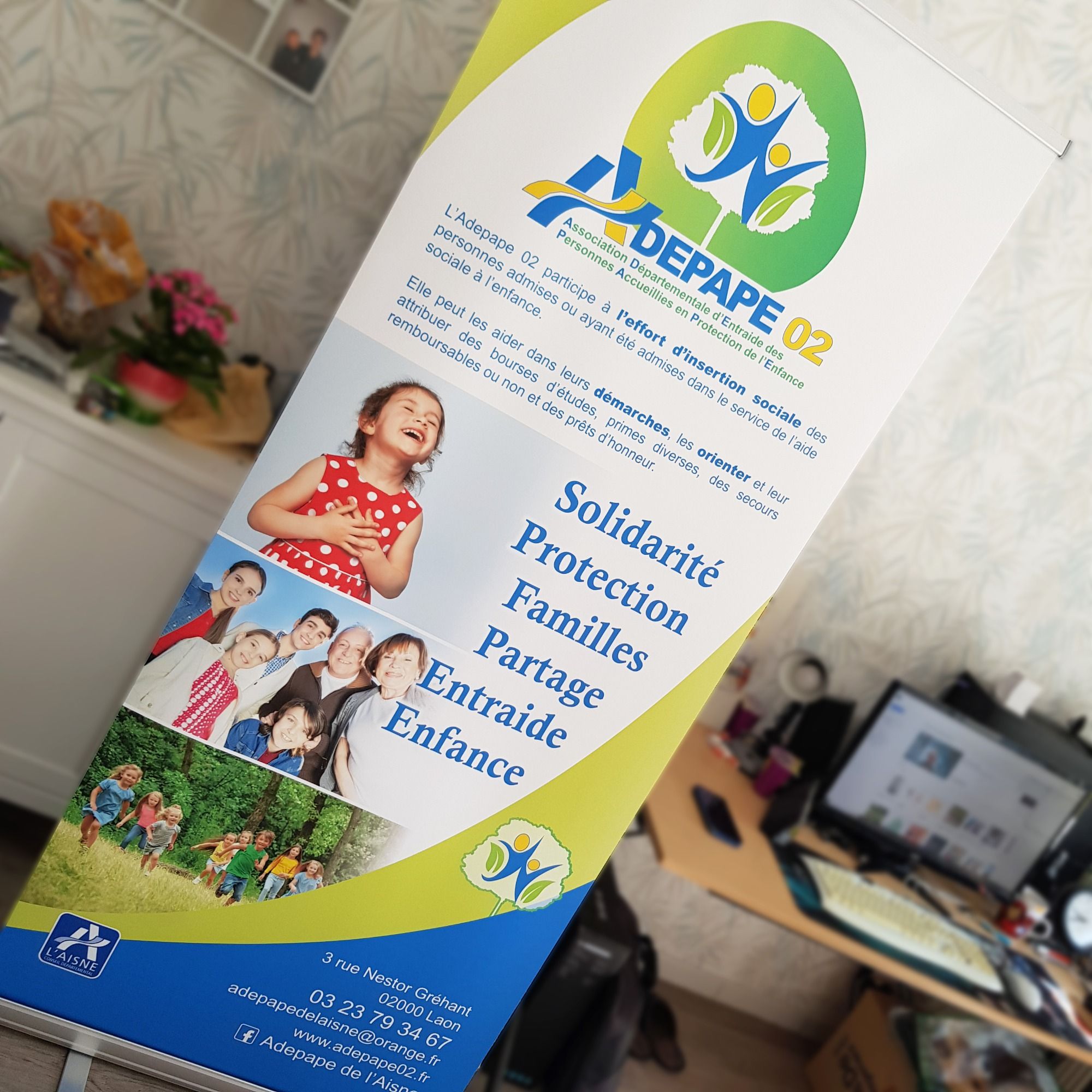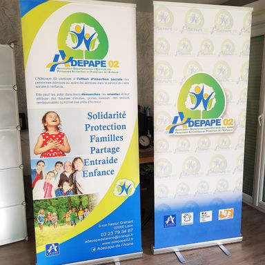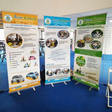 Grands roll up 840 x 2040mm pour l'association Aisne Collecte de Hartennes-et-Taux. 270g tissu polyester.
