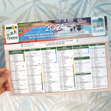 12 modèles de calendriers pour le club de foot BCV (Braine/Chassemy/Vailly). 297 x 210mm. 350gr/m2. Recto/verso.